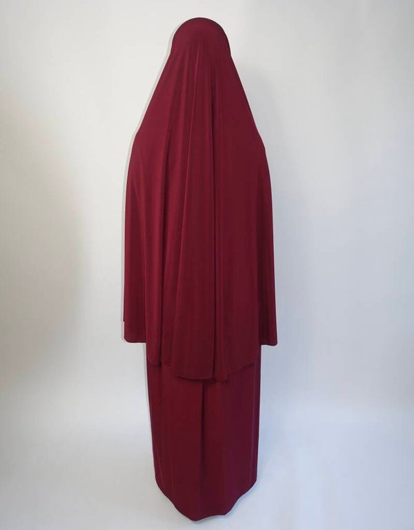 Onze It's Imane khimaar in de kleur Bordeaux. De khimaar sluit mooi aan op het gezicht, heeft een heerlijke soepele stof en schijnt niet door. De rok is gevoerd met een onderrok.